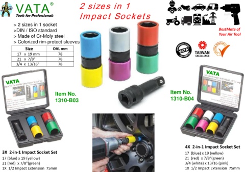3X 2-in-1 Impact Socket Set 17 (blue) x 19 (yellow)