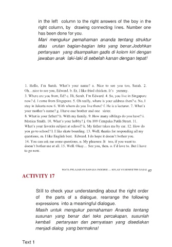 atau urutan bagian-bagian teks yang benar.Jodohkan