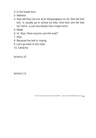 4. Alya tell that she live at jln bhayangkara no 43, She tell that