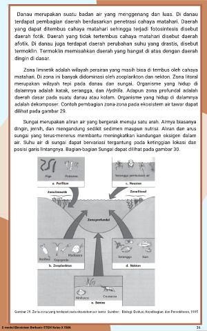 Gambar 29. Zona-zona yang terdapat pada ekosistem air tawar. Sumber : Biologi: Evolusi, Kepelbagian, dan Persekitaran, 1995