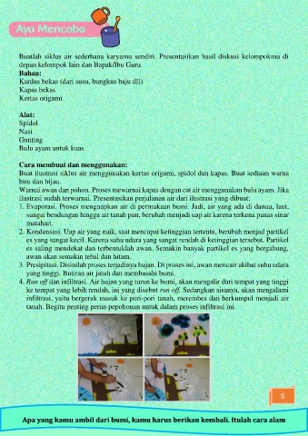 Buatlah siklus air sederhana karyamu sendiri. Presentasikan hasil diskusi kelompokmu di