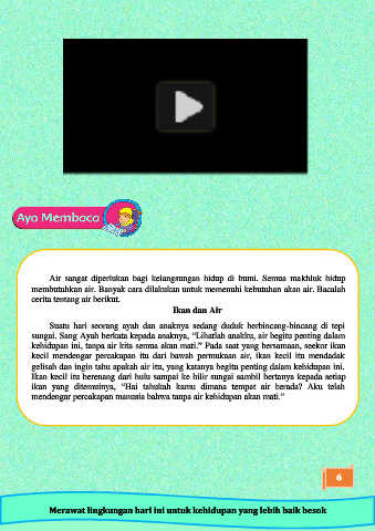 kehidupan ini, tanpa air kita semua akan mati.” Pada saat yang bersamaan, seekor ikan