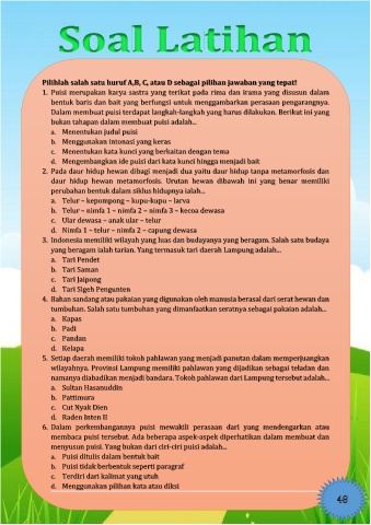 Pilihlah salah satu huruf A,B, C, atau D sebagai pilihan jawaban yang tepat!