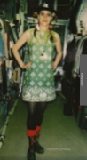 Linda Burns dressed as a Christmas tree in wardrobe trailer on “Savannah” (1996-1997). Casting Support
