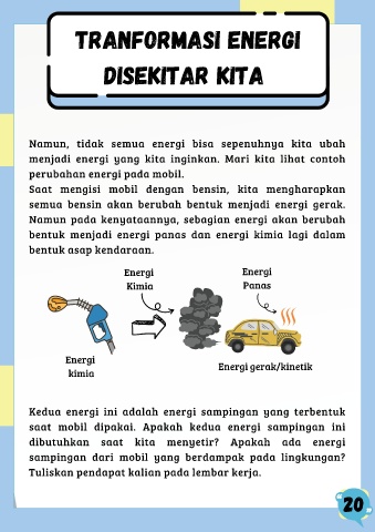 semua bensin akan berubah bentuk menjadi energi gerak.