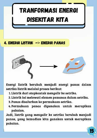 Jadi, listrik yang mengalir ke setrika berubah menjadi