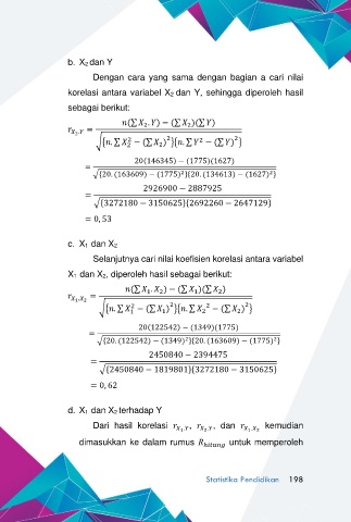korelasi antara variabel X2 dan Y, sehingga diperoleh hasil