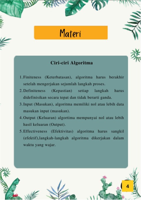 4. Output (Keluaran) algortima mempunyai nol atau lebih