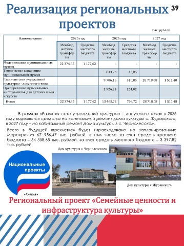 году выделяются средства на капитальный ремонт дома культуры с. Журавского,