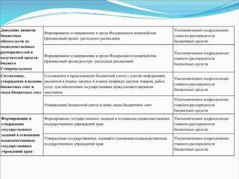 Доведение лимитов Формирование и направление в орган Федерального казначейства Уполномоченное подразделение