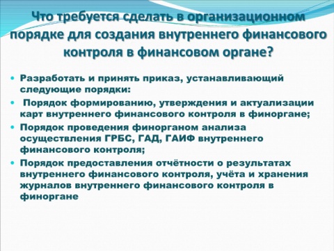 порядке для создания внутреннего финансового
