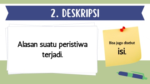 2. DESKRIPSI Alasan suatu peristiwa Bisa juga disebut terjadi. isi.