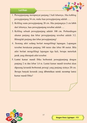 1. Persegipanjang mempunyai panjang 2 kali lebarnya. Jika keliling