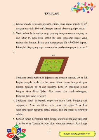 4. Sebidang tanah berbentuk trapesium sama kaki. Panjang sisi