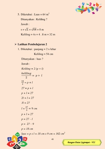 5. Diketahui : Luas = 64 m