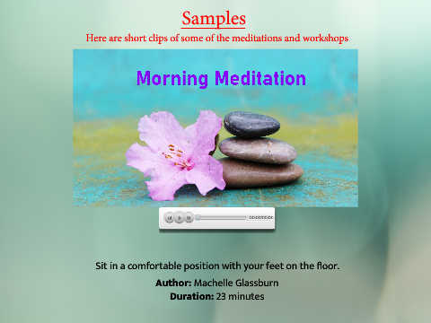 Samples Here are short clips of some of the meditations and workshops Sit in a comfortable position with your feet on the f oor. Author: Machelle Glassburn Duration: 23 minutes 21