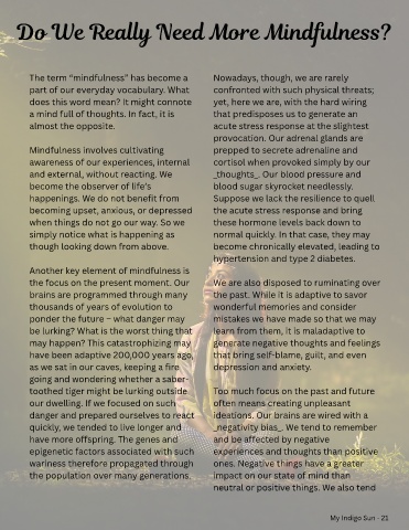 Mindfulness involves cultivating prepped to secrete adrenaline and