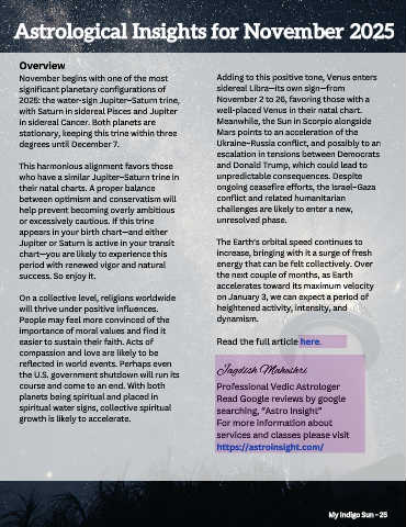 2025: the water-sign Jupiter–Saturn trine, November 2 to 26, favoring those with a
