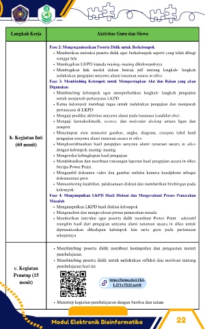 Langkah Kerja                                                                            Aktivitas Guru dan Siswa