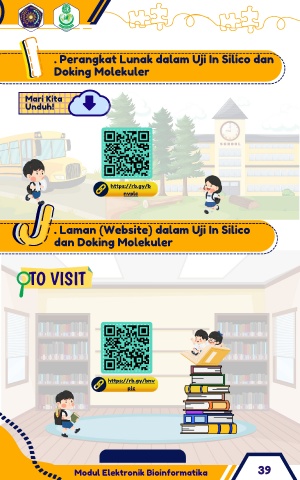 . Perangkat Lunak dalam Uji In Silico dan Doking Molekuler Mari Kita Unduh! https://rb.gy/b nvplc . Laman (Website) dalam Uji In Silico dan Doking Molekuler https://rb.gy/bnv plc Modul Elektronik Bioinformatika 39