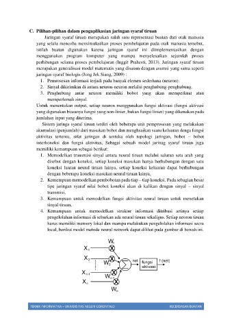 C. Pilihan-pilihan dalam pengaplikasian jaringan syaraf tiruan