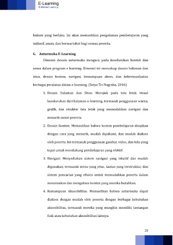 keseluruhan dari halaman e-learning, termasuk penggunaan warna,