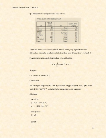 Kapasitas kalor suatu benda adalah jumlah kalor yang diperlukan atau