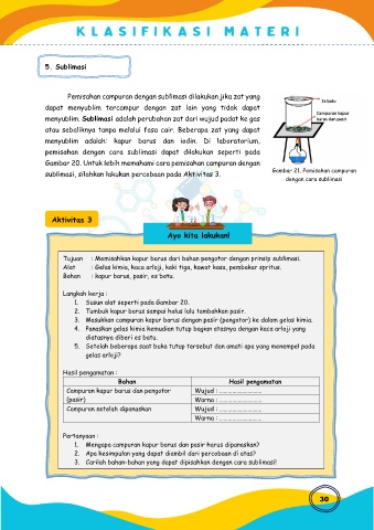 sublimasi, silahkan lakukan percobaan pada Aktivitas 3. Gambar 21. Pemisahan campuran