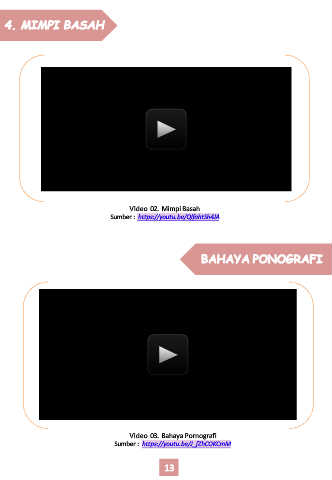 4. MIMPI BASAH Video 02. Mimpi Basah Sumber : https://youtu.be/QlfahtSh4JA BAHAYA PONOGRAFI Video 03. Bahaya Pornografi Sumber : https://youtu.be/J_fZhCOKCmM 13