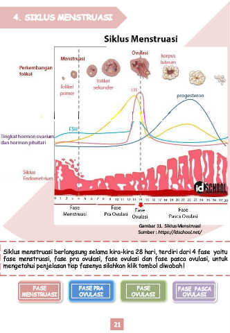 Siklus menstruasi berlangsung selama kira-kira 28 hari, terdiri dari 4 fase yaitu