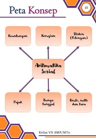 Peta Konsep 10 Diskon Keuntungan Kerugian (Potongan) Aritmatika Sosial Bunga Bruto, netto Pajak tunggal dan tara Kelas VII SMP/MTs