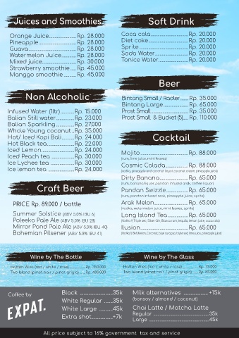 Mixed juice ..............................Rp. 30.000 Tonice Water ..........................Rp. 20.000