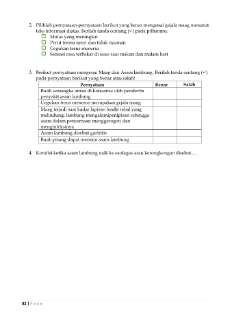 2. Pilihlah pernyataan-pernyataan berikut yang benar mengenai gejala maag menurut