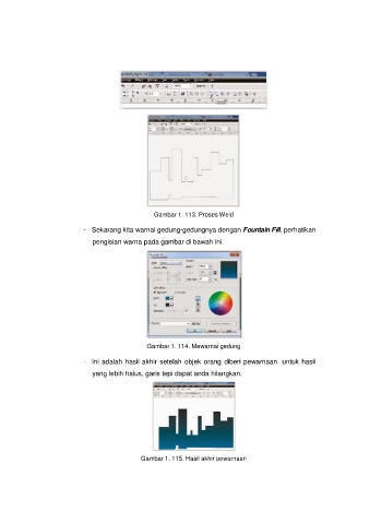 - Sekarang kita warnai gedung-gedungnya dengan Fountain Fill. perhatikan