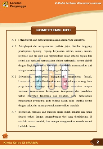 KI 2 :Menghayati dan mengamalkan perilaku jujur, disiplin, tanggung