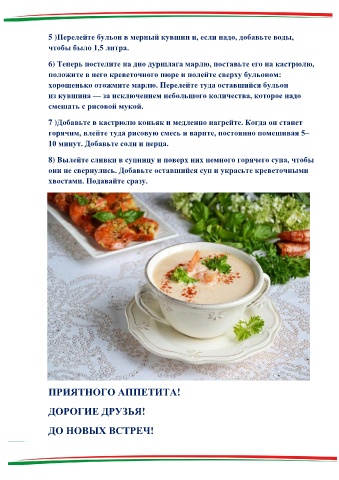 8) Вылейте сливки в супницу и поверх них немного горячего супа, чтобы