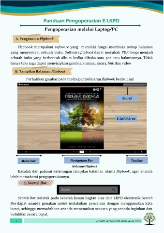 Bacalah dan pahami keterangan tampilan halaman utama flipbook, agar ananda