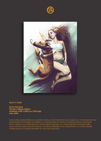 Este retrato digital refleja la conexión íntima y silenciosa entre una mujer y su compañero animal.