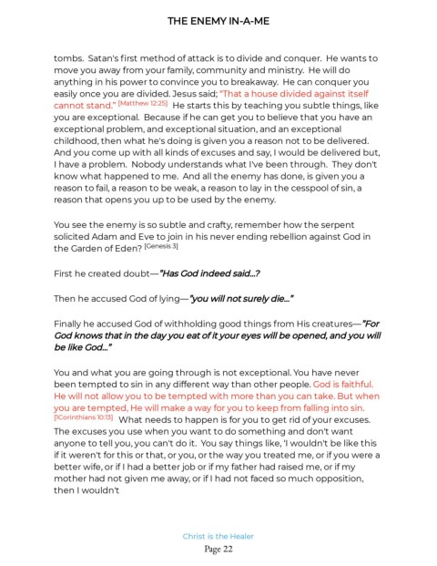 tombs. Satan's rst method of attack is to divide and conquer. He wants to