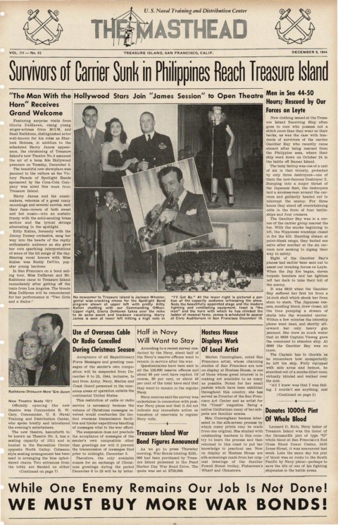 Survivors of Carrier Sunk in P�i_lippines Reac� Treasure lslan�