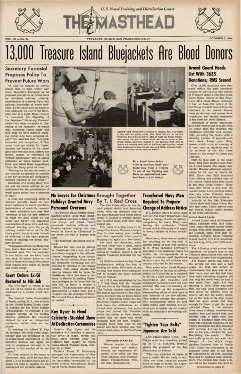 VOL. Ill - No. 34 TREASURE ISLAND, SAN FRANCISCO, CALIF.· OCTOBER 7, 1944: