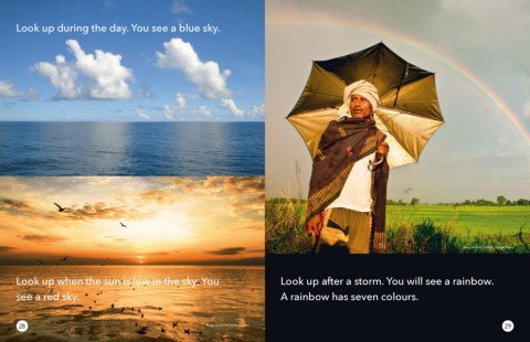 Look up when the sun is low in the sky. You Look up after a storm. You will see a rainbow.