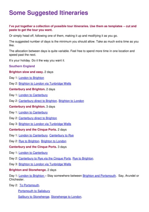 I’ve put together a collection of possible tour itineraries. Use them as templates – cut and