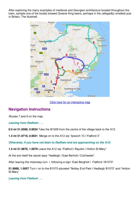 1.4 mi 51.9719, 0.9831 Merge on to the A12 s/p “Ipswich 10 / Flatford 3”.