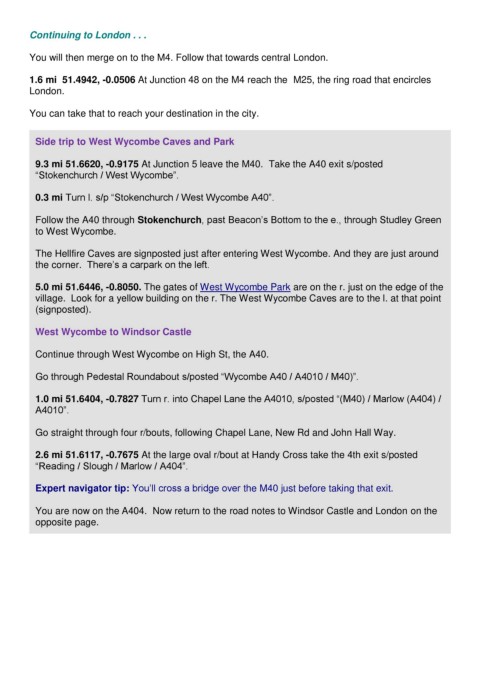 You are now on the A404. Now return to the road notes to Windsor Castle and London on the