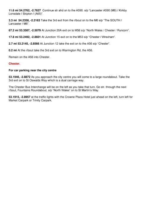 11.6 mi 54.2762, -2.7627 Continue str ahd on to the A590. s/p “Lancaster A590 (M6) / Kirkby