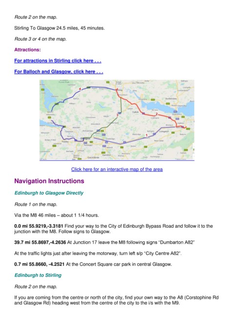 39.7 mi 55.8697,-4.2636 At Junction 17 leave the M8 following signs “Dumbarton A82”