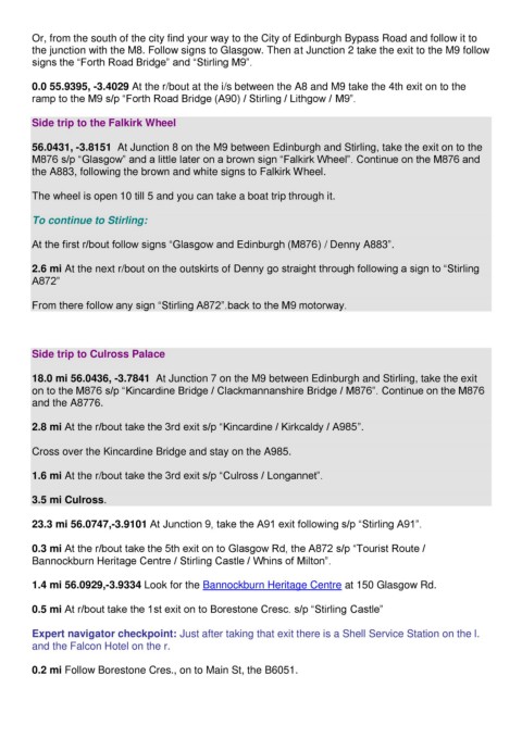 From there follow any sign “Stirling A872”.back to the M9 motorway.