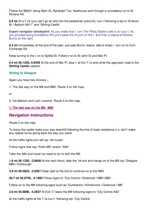 1: The fast way on the M9 and M80. Route 3 on the map.
