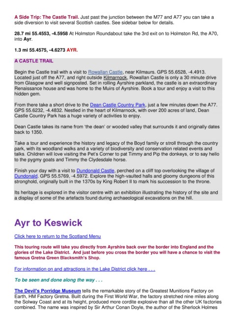 A Side Trip: The Castle Trail. Just past the junction between the M77 and A77 you can take a